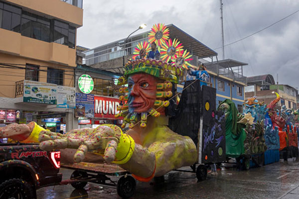 Desfile de carros alegóricos en el Carnaval huaracino 2026.